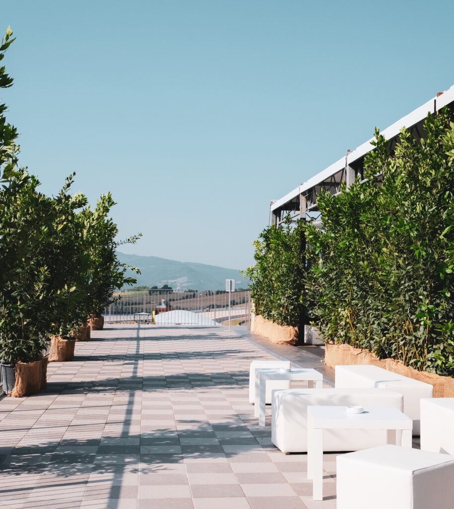 The Rooftop Lounge, situata al primo piano della palazzina principale del circuito, offre una vista mozzafiato sulla linea di partenza.