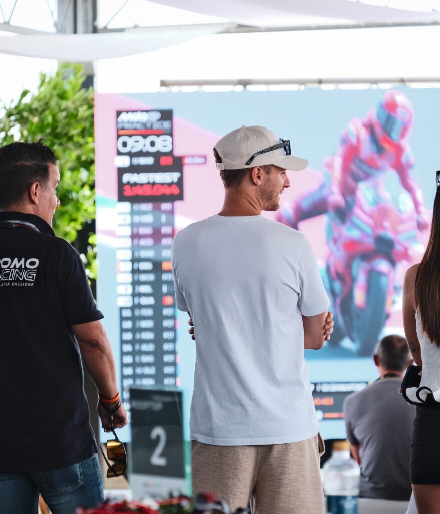 Elegante e riservata, questa area VIP consente di vivere da vicino l’adrenalina della griglia di partenza e della pit-lane durante i momenti più emozionanti del Motomondiale.